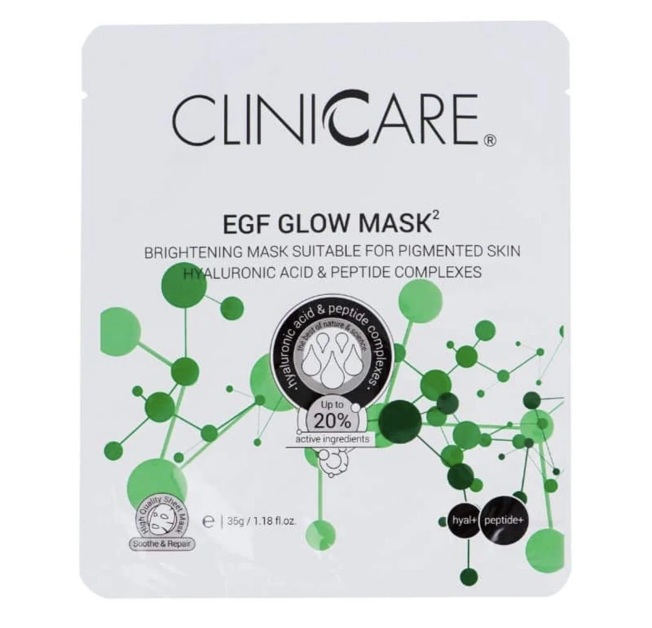 This professional-grade sheet mask contains a high concentration of active ingredients for long-lasting results. It includes Argireline, a wrinkle-smoothing ingredient that reduces the appearance of fine lines and brightening agents which work together to promote a radiant and even skin tone. These ingredients provide a targeted and long-lasting effect, addressing pigmentation concerns while minimising the visible signs of ageing.